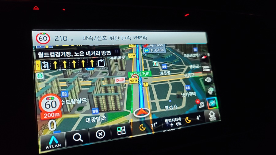 순정 내비게이션이 좋다? 나쁘다를 평가하기는 어려워보입니다. 하지만, 파인드라이브 아틀란은 순정 네비에 비해 시안성이 매우 좋다고 할 수 있습니다. 왕복 8시간 이상 운전을 고속도로, 국도를 이용해봤습니다. 간혹 초보자들이 실수하는 회전 교차로 안내는 정확한 안내를 제공해주며, 운전시에 다양한 안내등은 운전자에게 안전 운전을 할 수 있도록 하고 있습니다. 특히 몇차선을 타고 가야하는지 정확하게 표기를 해주기 때문에 미리 미리 차선을 변경할 수 있습니다.
