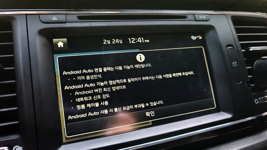 파인드라이브 AI3를 사용하기 위해서 USB 포트에 연결하면 다음과 같은 팝업창이 나옵니다. 기존에 사용하던 기아 음성 인식이 되지 않는다고 합니다. 하지만, 음성인식 기능이 아틀란에도 탑재가 되어 있기에 큰 불편함은 없어 보입니다. 음성인식 기능에 대한 리뷰는 다음에 진행할 예정입니다.