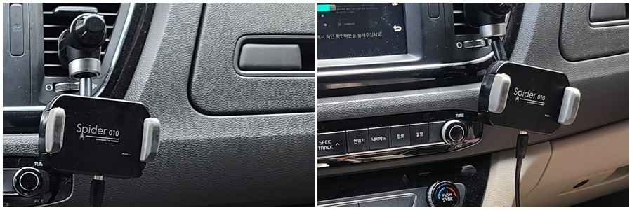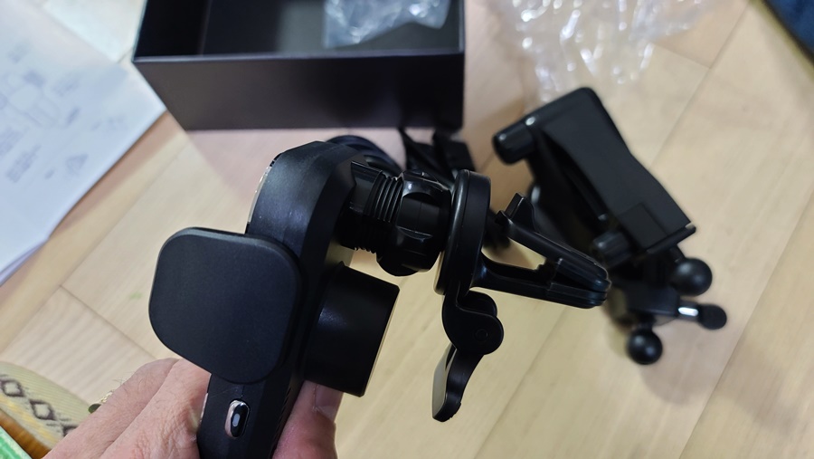 제 차량에는 대쉬보드 커버가 되어 있기에, 대시보드 마운트는 추후에 사용할 예정입니다. 송풍구 클립 방식으로 연결만 하면 됩니다. 남녀노소 쉽게 설치가 가능합니다. 송풍구 클립도 2개가 들어있어서 국산차, 수입차의 그 어떤 송풍구에도 충전 거치대 설치가 용이합니다.