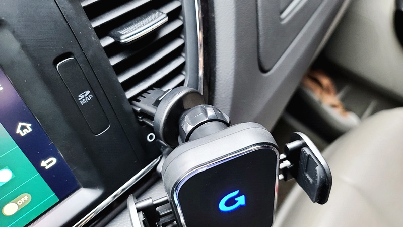 전원 연결이 되면 중앙에 로고에 LED가 들어오기에, 야간 어두운 곳에 자동차를 두었다면 스마트폰 충전기 거치대 위치를 쉽게 찾을 수 있기에, 고속 무선 충전이 용이합니다. LED 인디케이터 설치로 인하여 야간의 사용성까지 생각한 똑똑한 무선 고속 충전기라고 할 수 있습니다.