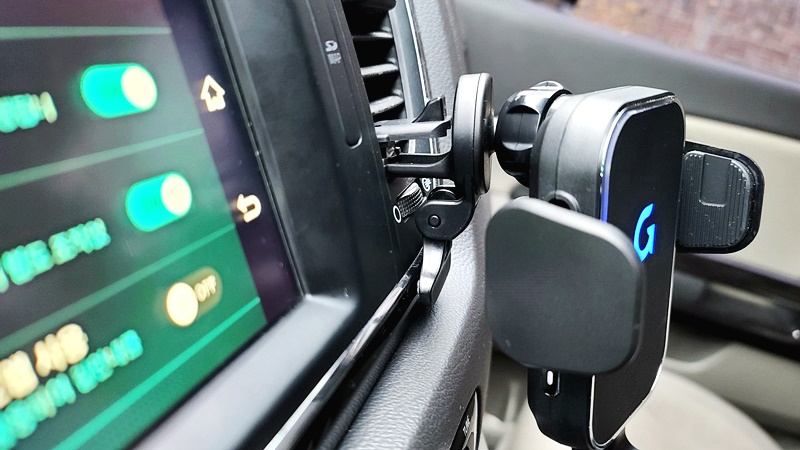 제 차량에는 대쉬보드 커버가 되어 있기에, 대시보드 마운트는 추후에 사용할 예정입니다. 송풍구 클립 방식으로 연결만 하면 됩니다. 남녀노소 쉽게 설치가 가능합니다. 송풍구 클립도 2개가 들어있어서 국산차, 수입차의 그 어떤 송풍구에도 충전 거치대 설치가 용이합니다.