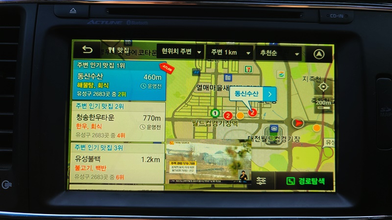 다른 내비게이션에서는 찾아볼 수 없는 기능이 바로 LIVE 기능입니다. 근처의 맛집, 주유소, 약국, 병원들을 빠르고 쉽게 검색을 할 수 있습니다. 맛집의 경우 각 지역별로 방문자 순으로 쉽게 정리가 되어 맛집을 결정하기가 더욱더 쉬워집니다. 빅데이터를 통해 가장 많이 검색하고 가장 많이 방문하는 데이터 기반으로 맛집을 알려주는 기능은 여행중에 가장 유용한 기능이었습니다. 여행지에서 맛집을 검색하려면 스마트폰으로 검색하고 주소 확인하고 다시 내비게이션에 입력하는 그런 불편한 과장이 필요 없이 바로 검색해서 경로 탐색이 가능합니다.