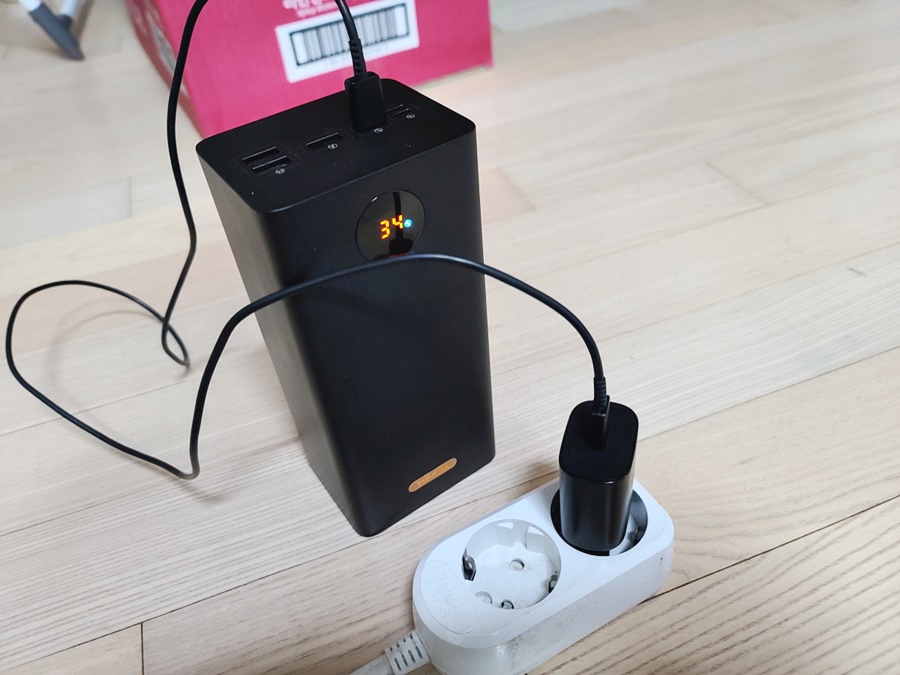 개봉기라고 하기에는 다소 무엇인가 아쉬운 상황이 있었습니다. 다른 분들은 박스 포장지에 보조 배터리 보호를 위해서 비닐에 싸여서 왔지만, 제가 받은 제품은 비닐이 없어서 의심 아닌 의심을 할 수밖에 없는 상황입니다. 하지만, 제품만 정상이라면 전혀 문제가 되지 않습니다. 살짝 아쉬운 점은 있다면, 전용 파우치 또는 케이스가 있었으면 하는 작은 바람이 있습니다. 재질 특성상 손때 자국이 선명이 보이기도 합니다. 항상 휴대하는 제품은 아니지만, 캠핑장등 야외에서는 일반적인 사용 패턴이 아닌 경우가 많기 때문에 파우치는 꼭 필요할듯 싶습니다.