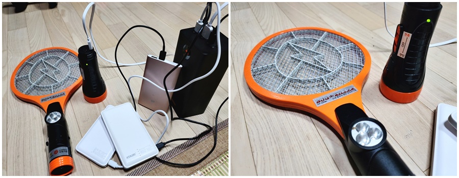 여름철 필수품인 전기 모기채도 충전이 가능합니다. 전기 모기채는 건전지 방식과 USB 충전 방식 2가지가 있지만, 건전지를 이용한 모기채의 경우 예전에 사용해보니 야외 특히 캠핑장, 물놀이 시에 배터리가 없으면 난감한 경우가 종종 있었는데, USB 충전 타입의 경우 언제 어디서나 쉽고 편하게 충전이 가능합니다. 날씨가 더워짐에 따라서 모기가 점차 증가하고 있습니다.