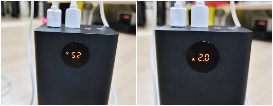 가장 큰 장점은 현재 배터리의 용량을 직관적으로 확인이 가능합니다. 100%중에서 얼마를 사용했고 얼마를 사용했는지 확인이 가능하며, 충전시에는 현재 충전 진행률 확인이 수월합니다. 기존의 보조 배터리들은 대부분 램프로 충전상황을 알수 있었습니다.