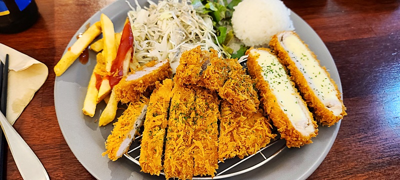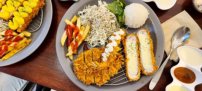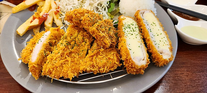아이들이 가장 좋아하는 치즈로 구성된 치즈돈가스입니다. 겉은 바삭하고 속은 치즈로 촉촉하면서 부드러움으로 인해서 아이들이 확실히 좋아할 만한 선택입니다. 아이들은 치즈들 좋아하기 때문에 치즈돈가스의 선택은 나쁘지 않습니다. 일부 식당에서 저가의 치즈를 사용하는데, 치즈 돈가스는 부드러운 치즈향이 돈가스의 풍미를 더욱더 풍성하게 만들어 줍니다.