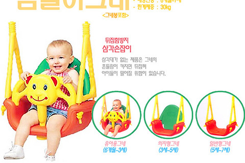 유아용 그네를 이제 사버렸습니다. 일단 가격은 30,000~ 40,000 원 정도 합니다. 옥션,지마켓등 각종 오픈마켓에서 찾아보시면 됩니다. 저는 이런걸 사버렸답니다.. 7세까지 쓸 생각으로 그냥 사봤습니다. 대상연령이 6개월이 넘었기에 설치를 했습니다. 유아용그네, 유아 그네, 철봉 그네 , 아동용 그네, 아동 그네, 곰돌이 그네등등 많은 단어로 검색을 하면, 많이 나온답니다. 저도 솔직히 철봉운동을 해볼 생각(?)에 샀지만... 과연 얼마나 운동을 할련지 모르겠습니다만.... 저는 곰돌이 보다는 코끼리가 더 이쁘다고 생각했기에 , 코끼리로 이렇게 구매를 했답니다. 아이들이 제일 좋아하는 그네라고 합니다. 오랫동안 태워주는건 아무래도... 임시로 설치를 해봤습니다. 머 괜찮네요. 설..