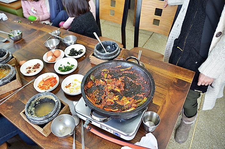 어느새 돌솥밥과 돼지주물럭을 다 먹어갔습니다. 저처럼 조금은 대식가이라면 3명이 가신다면 2가지 종류로 주문을 하는게 낳을듯 싶습니다. 저의 옆 테이블은 밥은 다 드시지만, 고기를 남기시는 분들도 계셨습니다. 식성이 좋으신 분이라면 1인분을 더 추가로 주문하는 편이 낳을듯 합니다. 또한 이곳은 1명이서 드실수는 없기 때문에 2인분이상 주문이 가능합니다. 4명이 방문을 한다면 주물럭이나 해물탕 2인분과 찌게 3인분을 주문하면 정말 푸짐하게 먹을 수 있을듯 합니다.