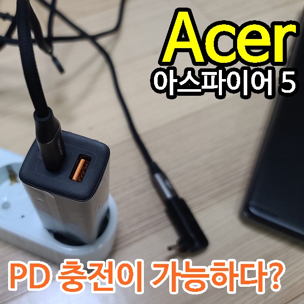 PD 충전을 하기 위해서는 PD 충전기가 필요합니다. 국내의 오픈마켓 또는 특정 사이트에서 구매를 할 수 있지만, 고속 충전이 가능한 PD 충전기가 많은 편은 아닙니다. 특히 ACER 에이서 같은 출력이 높은 노트북의 경우 65W 이상이 되어야 충전이 가능합니다. 대중적으로 판매되고 있는 PD 충전기는 50W 이하가 많다 보니 ACER 이스파이어5는 충전이 불가능합니다.