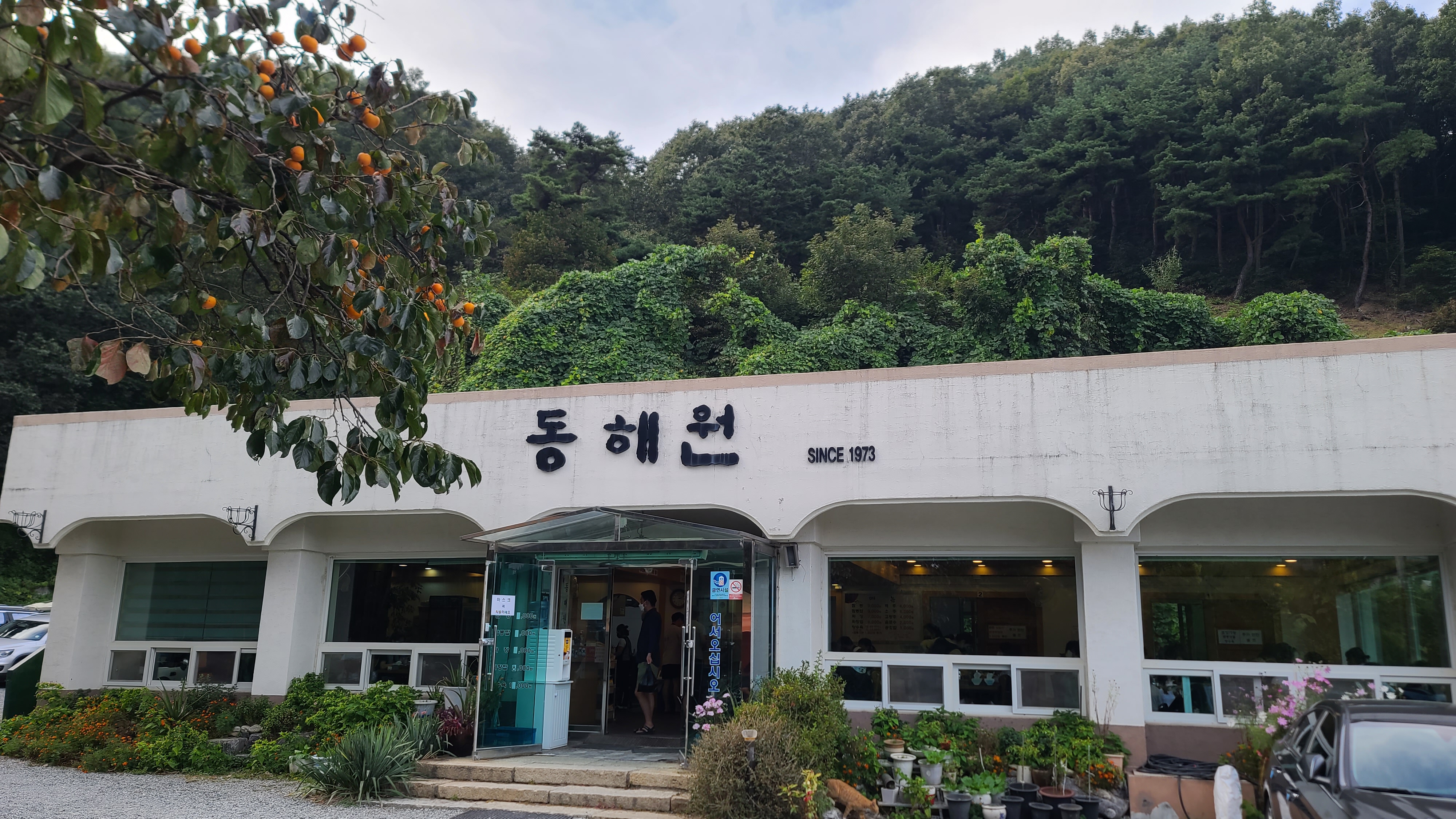 1973년부터 운영해온 동해원이라고 합니다. 건물은 1973년 방식의 건물이라고 하기에는 최신 건물이라는 느낌을 받았습니다. 아무래도 1973년부터 운영하다보니 새롭게 건물을 올리지 않았나 생각이 듭니다. 이렇게 외진 곳에 이런 식당이 운영될까 그런 의구심이 들 정도였습니다.