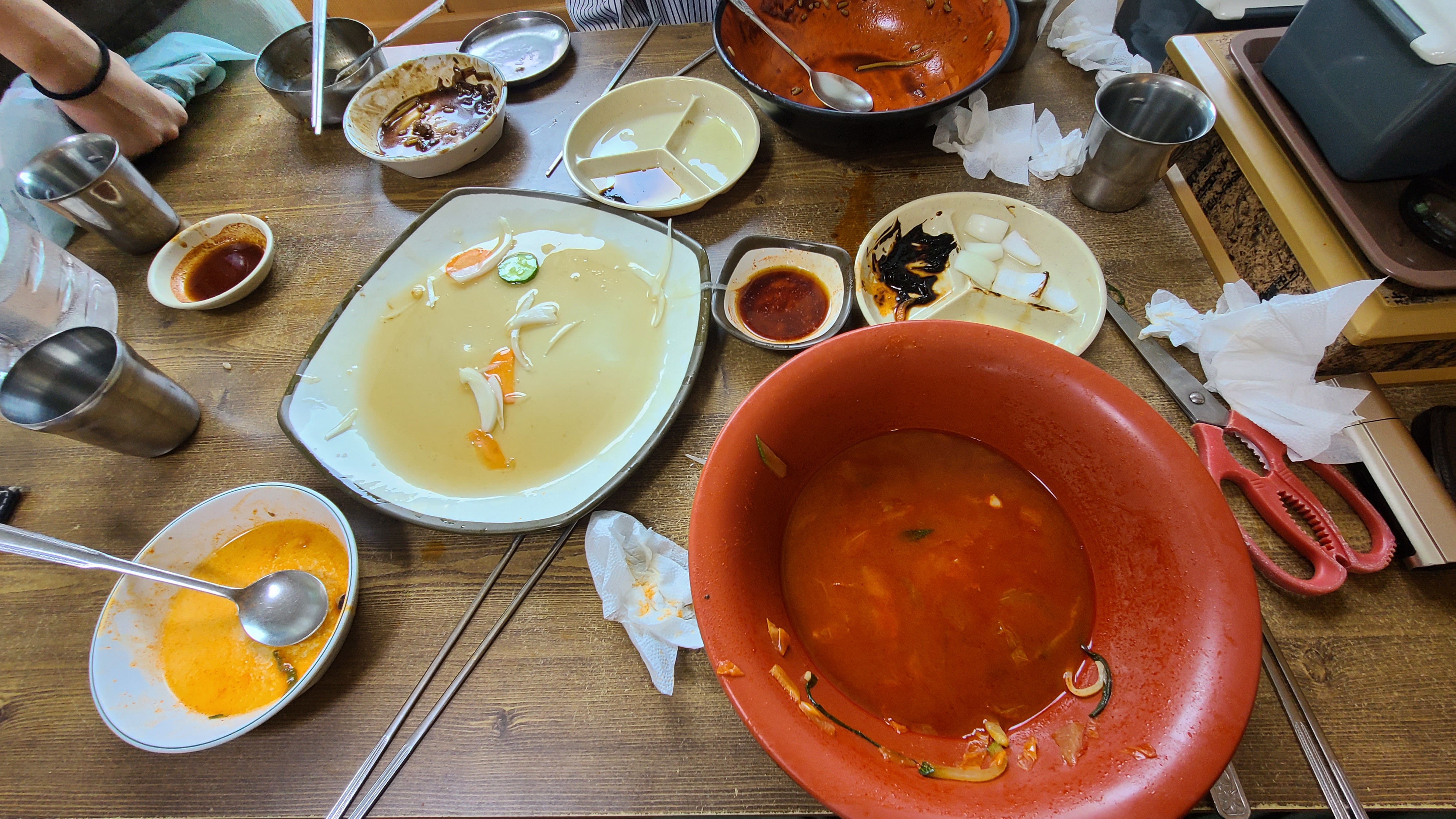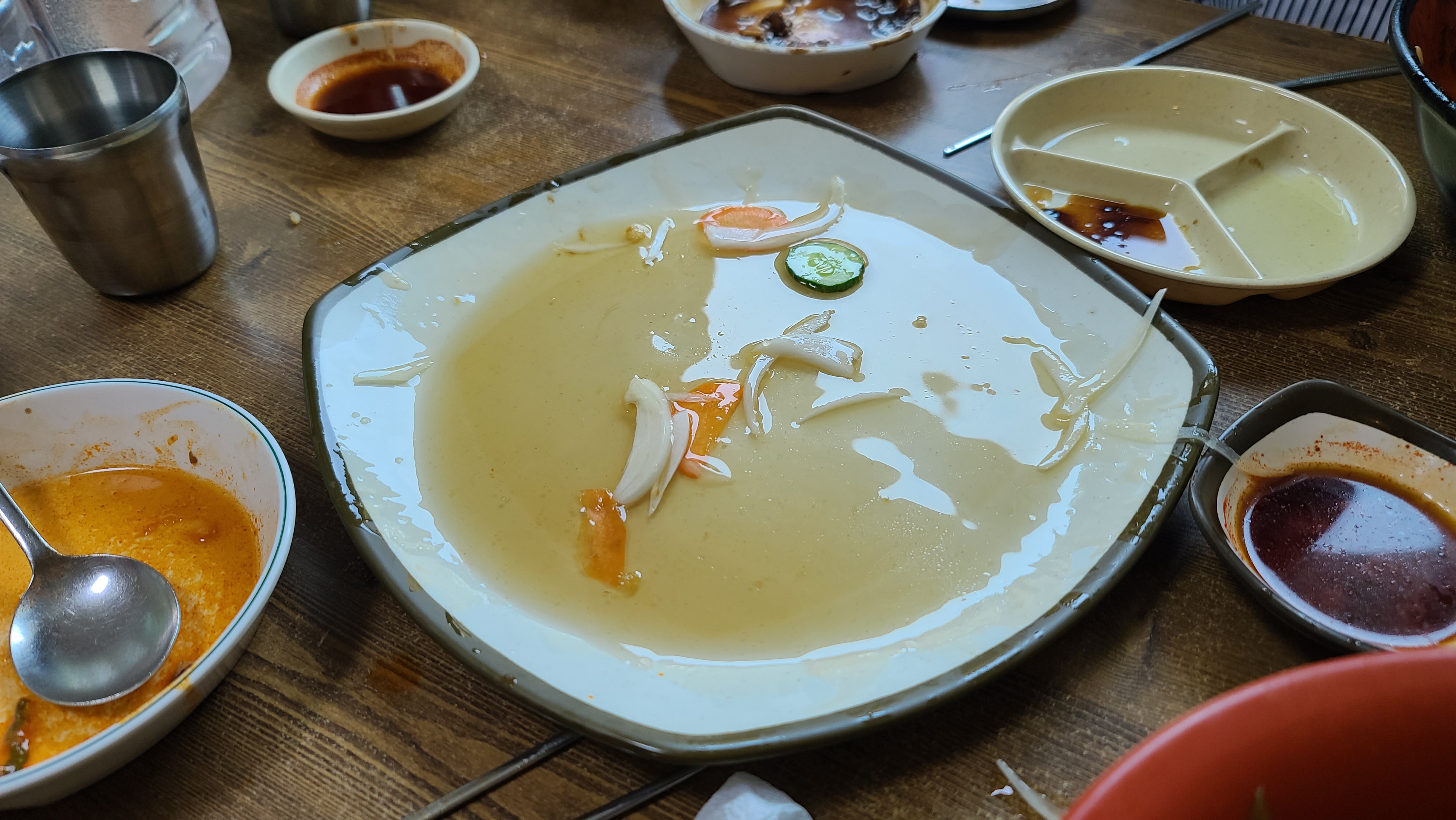 짬뽕 국물은 얼큰하면서 개운서도 얼큰한 느낌이 상당히 좋았습니다. 국물을 먹다보면 밥을 넣어서 먹고 싶을 만큼 국물 맛이 정말 좋았습니다. 저처럼 이빨 사이 사이가 좋지 않은 사람이라면, 부추가 종종 끼는 바람에 이쑤시게는 필수입니다.