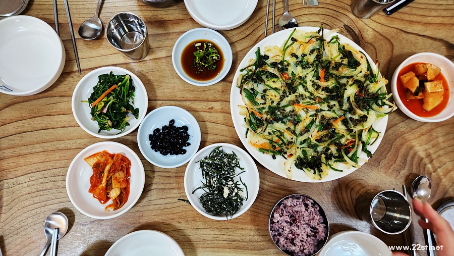 중학생인 아이들은 다슬기 칼국수, 다슬기수제비를 먹지 않는다고 해서 다 슬기 전을 주문했습니다. 예전에 영동에서 먹었던 다 슬기 전과는 다소 차이가 있습니다. 넉넉한 다슬기와 다른 식당들과 다르게 이곳은 양파가 많이 들어가서 그런지 다소 단맛과 다슬기의 조합으로 인해서 남녀노소 즐길 수 있는 맛이 아닐까 싶습니다.