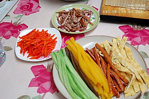 따스한 봄날이 왔습니다만, 오늘은 유달리 날씨가 조금은 쌀쌀한 하루였습니다. 소풍을 가고 싶지만, 아직 날씨가 춥고, 아이들이 아직 걷지 못하는 관계로 잠깐 앞에 나가는 것 외에는 조금은 어렵네요 그래서 김밥을 먹기로 결정하고 집에서 조금은 특별하고 맛있는 김밥을 만들어보기로 했습니다. 우엉, 단무지. 그리고 오리훈제,계란,당근으로 만드는 김밥입니다. 오늘은 글 대신 사진으로 페이지를 만들어 보았습니다. 이렇게 준비를 하고 준비가 되었으면, 바로 김밥을 만들어 보겠습니다.